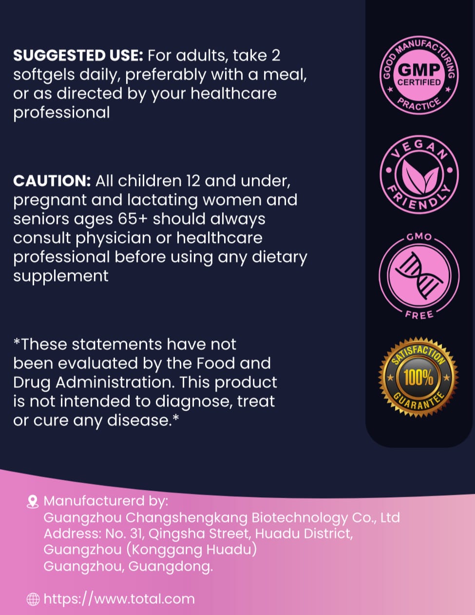 Para adultos, tomar 2 cápsulas blandas al día, preferiblemente con una comida, o según las indicaciones de su profesional de la salud.