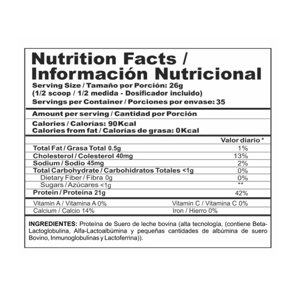 Perfil Completo de Aminoácidos y BCAAs: Con cada porción, obtienes un perfil completo de aminoácidos esenciales, incluyendo BCAAs que promueven el desarrollo muscular y una recuperación rápida tras entrenamientos intensos.